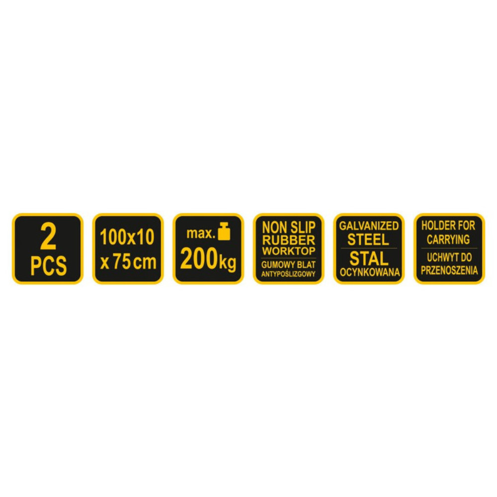 Nagy teherbírás – A készlet két darab bakot tartalmaz, amelyek együttesen akár 200 kg terhelést is elbírnak, így alkalmas nehéz munkadarabok alátámasztására is.